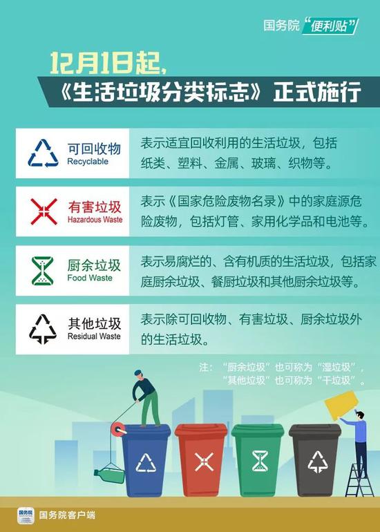 《生活垃圾分類標(biāo)志》正式施行,手把手教你垃圾分類 日期:2019-12-11 上一篇:垃圾分類七大門派 你知道幾個? 下一篇:全國住房和城鄉(xiāng)建設(shè)工作會議召開 部署2020年九大重點(diǎn)任務(wù)! 返回