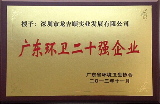 公司榮獲“廣東環(huán)衛(wèi)二十強企業(yè)”榮譽稱號