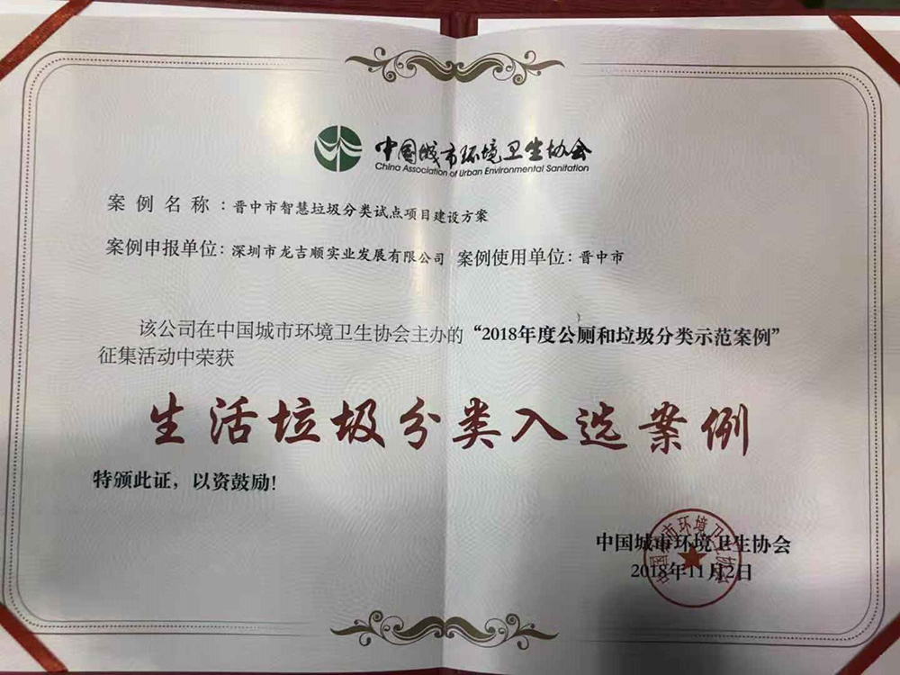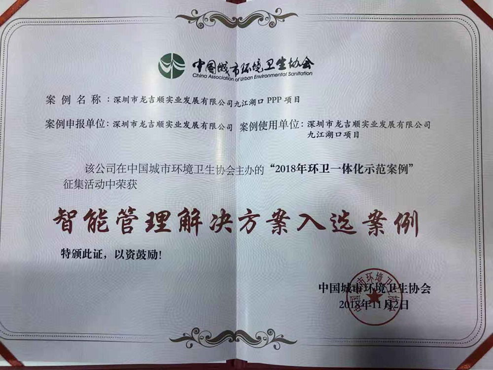 祝賀公司榮獲2018中國城市環(huán)境衛(wèi)生協(xié)會示范案例
