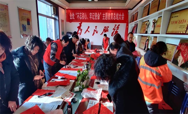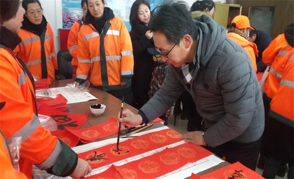 為了進一步推進文化進萬家活動,提高文化惠民服務質(zhì)量,全力助推新時代文明實踐工作,2020年1月15日,陽泉市礦區(qū)美術家協(xié)會,組織近20名書畫家志愿者積極參加礦區(qū)“我們的中國夢---文化進萬家”活動。在新春來臨之際,為一直奮斗在一線的環(huán)衛(wèi)工人送去新春的溫暖與祝福。