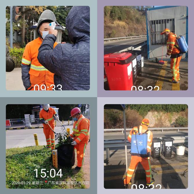 疫情當(dāng)前,刻不容緩,深圳市龍吉順實業(yè)發(fā)展有限公司積極響應(yīng)國家號召,按照上級部門要求部署,啟用重大事件應(yīng)急機(jī)制,把保障環(huán)衛(wèi)工人的生命健康和安全放在第一位,強(qiáng)化預(yù)防工作,緊急進(jìn)入疫情防控狀態(tài),并要求奮在一線的橙色天使們:強(qiáng)化認(rèn)知,時刻警惕;做好防護(hù)、嚴(yán)格落實,重點區(qū)域,加強(qiáng)防護(hù),并要求環(huán)衛(wèi)工人作業(yè)時務(wù)必做好新型冠狀病毒肺炎的防護(hù)措施。建立每天匯報制度,匯報內(nèi)容包含有無員工存在發(fā)熱咳嗽等癥狀,已采取的防控措施,有無員工計劃前往武漢,員工返深時間、交通工具、居住地等,詳細(xì)記錄每天工作動態(tài)并及時上報。每天對各街道、城中村、鄉(xiāng)鎮(zhèn)進(jìn)行消毒清洗,各類環(huán)衛(wèi)設(shè)施、工具、車輛做到每天消毒并做好臺賬登記,新增的口罩、手套等一次性衛(wèi)生用品專用垃圾桶設(shè)置專人管理,按指引消毒,確保環(huán)境干凈整潔,全面打響這場防疫攻堅戰(zhàn)。