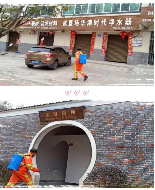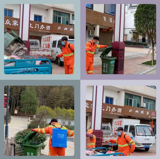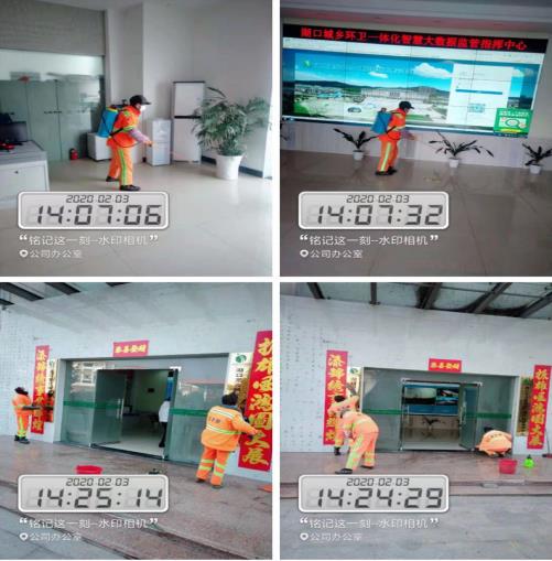 公司調(diào)動霧炮車、高壓沖洗車、工人對全縣的垃圾桶、工人斗車、公廁、壓縮站、中轉(zhuǎn)站、農(nóng)貿(mào)市場、及辦公地點進行全面消毒,每天至少3次,做到不留死角。