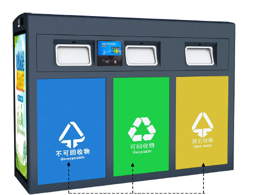 (互聯(lián)網(wǎng)+智慧垃圾分類亭是由智慧分類垃圾箱、智能可回收物收集箱、智能垃圾袋發(fā)放機、智能積分兌換機、垃圾分類數(shù)據(jù)公示展示、垃圾分類宣傳廣播及海報等,集于一體的全方位智能化互聯(lián)網(wǎng)+垃圾分類亭)