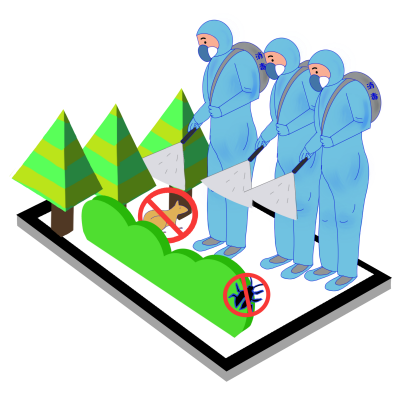 ③ 集中點或休息點每天用水全面沖洗一次,再用有效氯濃度為1000~2000㎎/L的消毒劑溶液對墻面、地面、周圍環(huán)境噴灑消毒一次,噴藥量為200-300mL/㎡。